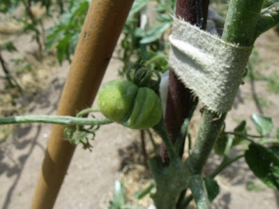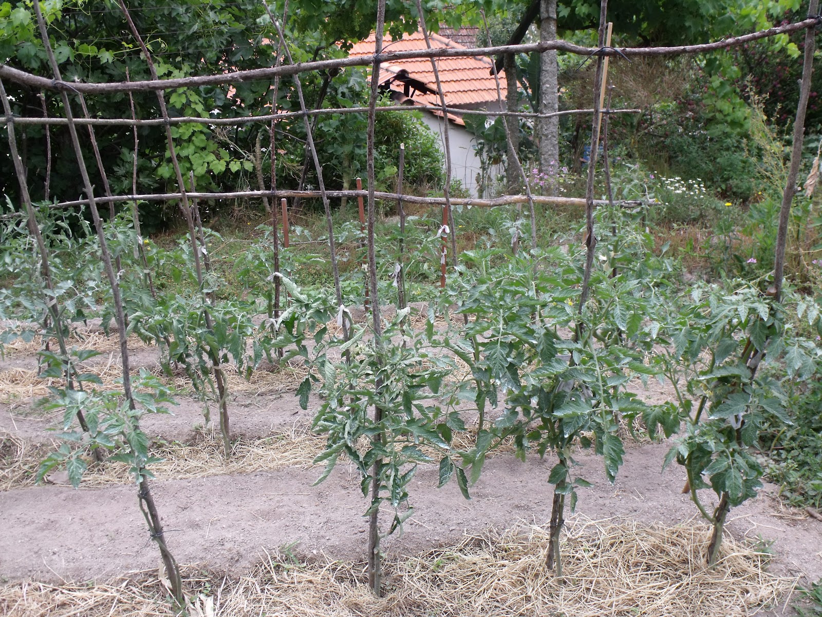 Os tomates começam agora a produzir, sempre muito bem vigiados e tratados com calda bordalesa nao va o raio do tempo fazer estragos...
